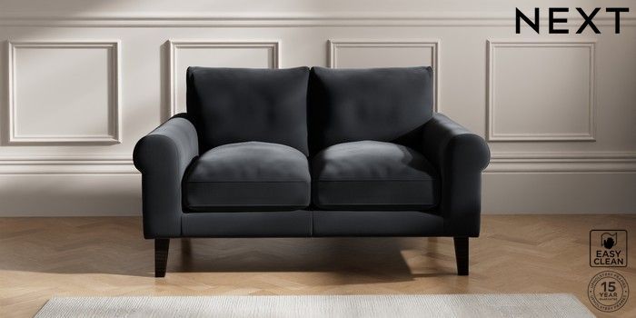 6.12.1 Buy Palermo Relaxed Sit 2 Seater Small Sofa Plush Velvet Easy Clean Charcoal Grey Tapered - Dark from the Next UK online shop Click here to use our accessible website