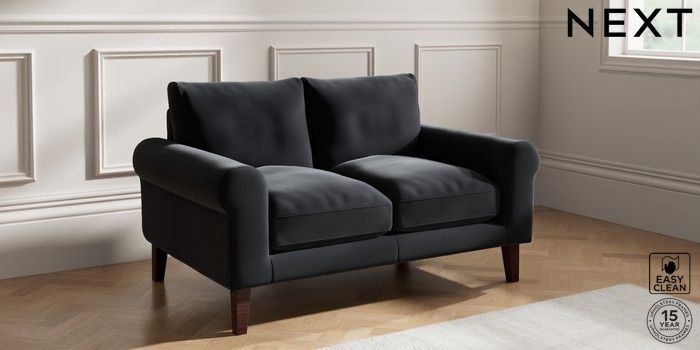 7.0.3 Buy Palermo Relaxed Sit 2 Seater Small Sofa Plush Velvet Easy Clean Charcoal Grey Tapered - Dark Brown from the Next UK online shop Click here to use our accessible website