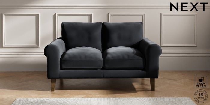 6.12.1 Buy Palermo Relaxed Sit 2 Seater Small Sofa Plush Velvet Easy Clean Charcoal Grey Tapered - Mid from the Next UK online shop Click here to use our accessible website