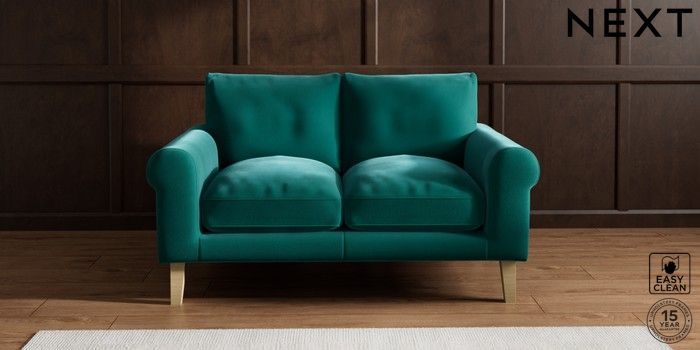 6.12.1 Buy Palermo Relaxed Sit 2 Seater Small Sofa Plush Velvet Easy Clean Juniper Green Tapered - Light from the Next UK online shop Click here to use our accessible website