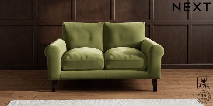6.12.1 Buy Palermo Relaxed Sit 2 Seater Small Sofa Plush Velvet Easy Clean Mid Olive Green Tapered - Dark from the Next UK online shop Click here to use our accessible website
