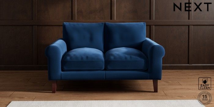 6.12.1 Buy Palermo Relaxed Sit 2 Seater Small Sofa Plush Velvet Easy Clean Navy Blue Tapered - Dark Brown from the Next UK online shop Click here to use our accessible website