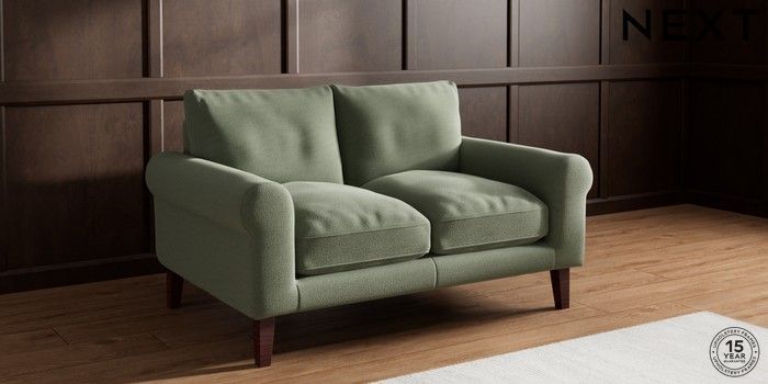 7.0.3 Buy Palermo Relaxed Sit 2 Seater Small Sofa Relaxed Linen Look Dark Green Tapered - Dark Brown from the Next UK online shop Click here to use our accessible website