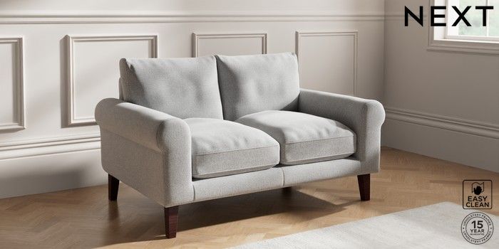 7.0.3 Buy Palermo Relaxed Sit 2 Seater Small Sofa Tweedy Blend Easy Clean Light Silver Grey Tapered - Dark Brown from the Next UK online shop Click here to use our accessible website