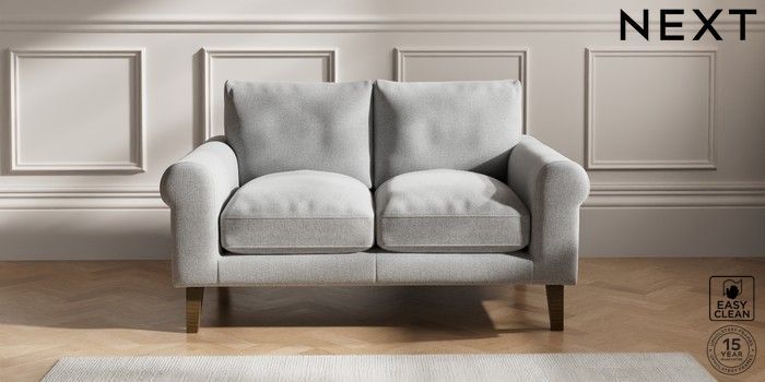 6.12.1 Buy Palermo Relaxed Sit 2 Seater Small Sofa Tweedy Blend Easy Clean Light Silver Grey Tapered - Mid from the Next UK online shop Click here to use our accessible website
