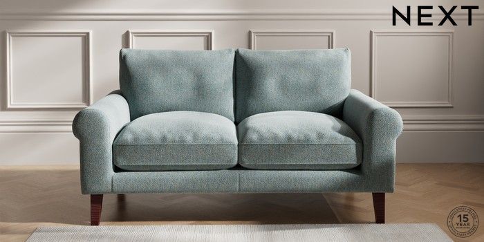 6.12.1 Buy Palermo Relaxed Sit 2 Seater Sofa Chunky Marl Mid Blue Tapered - Dark Brown from the Next UK online shop Click here to use our accessible website