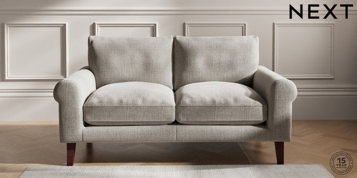 6.12.1 Buy Palermo Relaxed Sit 2 Seater Sofa Chunky Weave Dove Grey Tapered - Dark Brown from the Next UK online shop Click here to use our accessible website