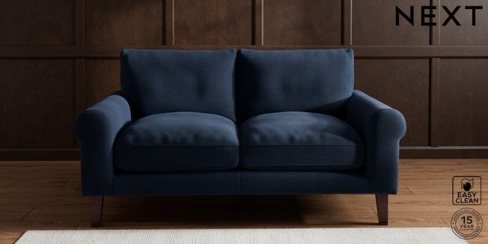 6.12.1 Buy Palermo Relaxed Sit 2 Seater Sofa Fine Chenille Easy Clean Dark Navy Blue Tapered - Dark Brown from the Next UK online shop Click here to use our accessible website