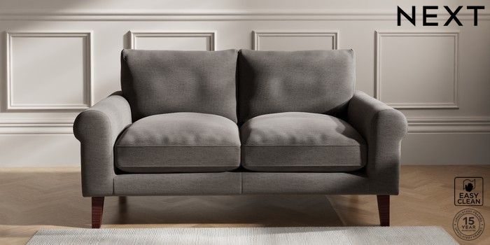 6.12.1 Buy Palermo Relaxed Sit 2 Seater Sofa Fine Chenille Easy Clean Dark Smoke Grey Tapered - Dark Brown from the Next UK online shop Click here to use our accessible website
