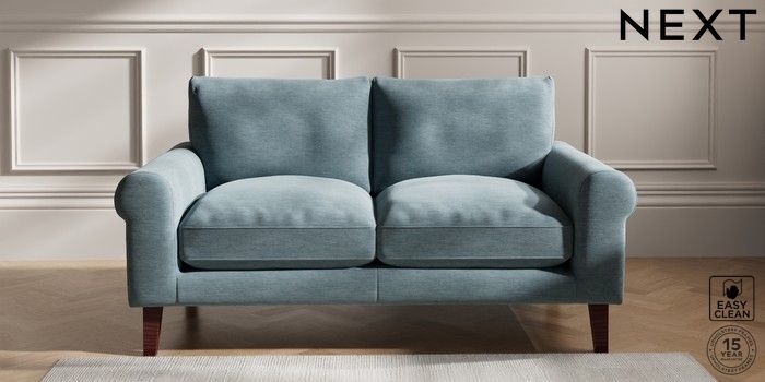 6.12.1 Buy Palermo Relaxed Sit 2 Seater Sofa Fine Chenille Easy Clean Mid Blue Tapered - Dark Brown from the Next UK online shop Click here to use our accessible website
