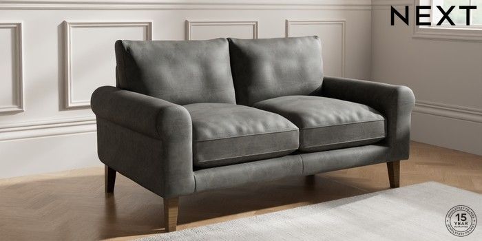 7.0.3 Buy Palermo Relaxed Sit 2 Seater Sofa Monza Faux Leather Easy Clean Dark Grey Tapered - Mid from the Next UK online shop Click here to use our accessible website