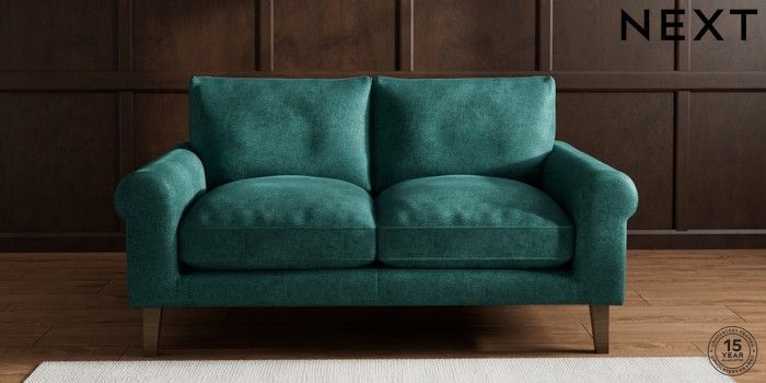 6.12.1 Buy Palermo Relaxed Sit 2 Seater Sofa Plush Chenille Dark Teal Green Tapered - Mid from the Next UK online shop Click here to use our accessible website