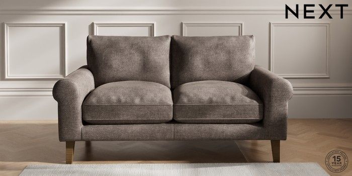 6.12.1 Buy Palermo Relaxed Sit 2 Seater Sofa Plush Chenille Mink Brown Tapered - Mid from the Next UK online shop Click here to use our accessible website