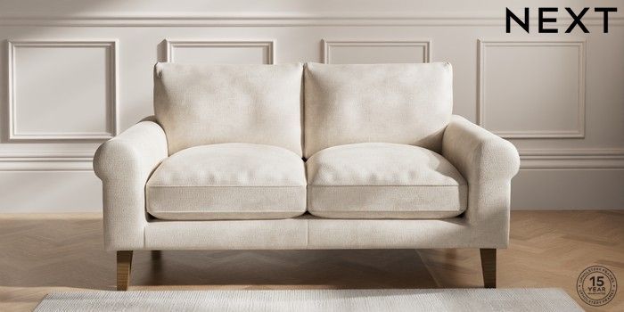 6.12.1 Buy Palermo Relaxed Sit 2 Seater Sofa Plush Chenille Oyster Tapered - Mid from the Next UK online shop Click here to use our accessible website