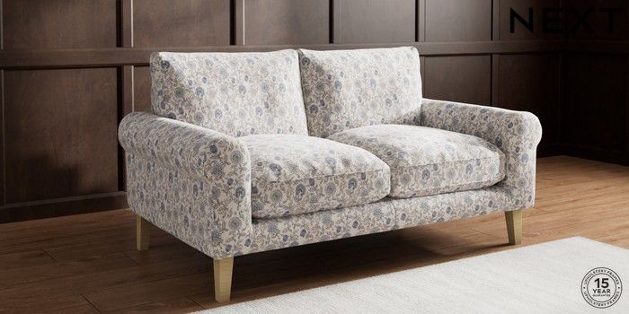 7.3.1 Buy Palermo Relaxed Sit 2 Seater Sofa Relaxed Linen Look Print Woodblock Floral Blue Tapered - Light from the Next UK online shop Click here to use our accessible website