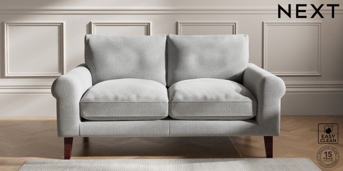 6.12.1 Buy Palermo Relaxed Sit 2 Seater Sofa Tweedy Blend Easy Clean Light Silver Grey Tapered - Dark Brown from the Next UK online shop Click here to use our accessible website