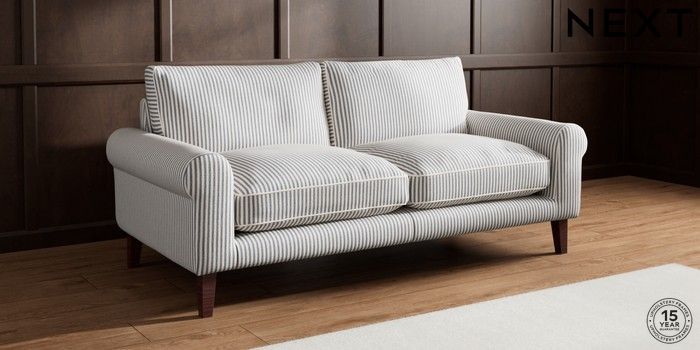 7.3.1 Buy Palermo Relaxed Sit 3 Seater Sofa Chenille Stripe Slate Blue Tapered - Dark Brown from the Next UK online shop Click here to use our accessible website