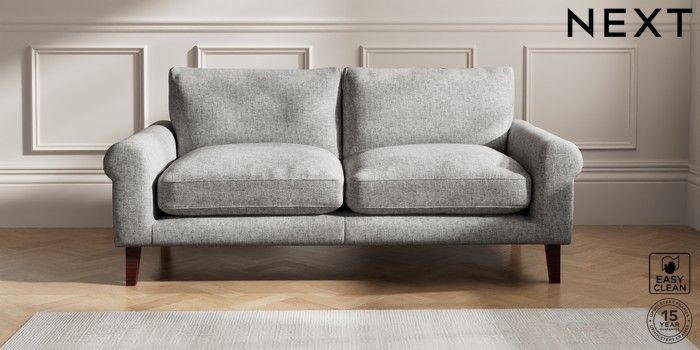 6.12.1 Buy Palermo Relaxed Sit 3 Seater Sofa Chunky Boucle Easy Clean Light Grey Tapered - Dark Brown from the Next UK online shop Click here to use our accessible website