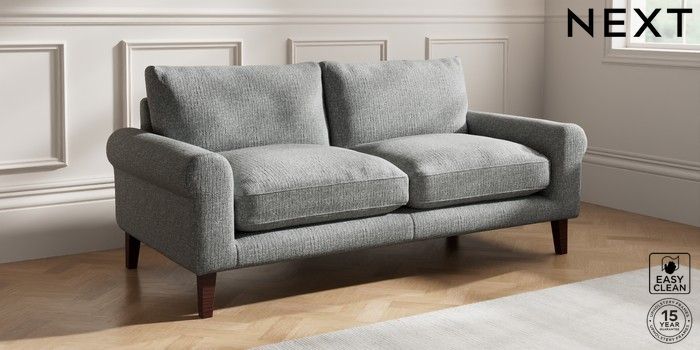 7.0.3 Buy Palermo Relaxed Sit 3 Seater Sofa Chunky Boucle Easy Clean Mid Grey Tapered - Dark Brown from the Next UK online shop Click here to use our accessible website