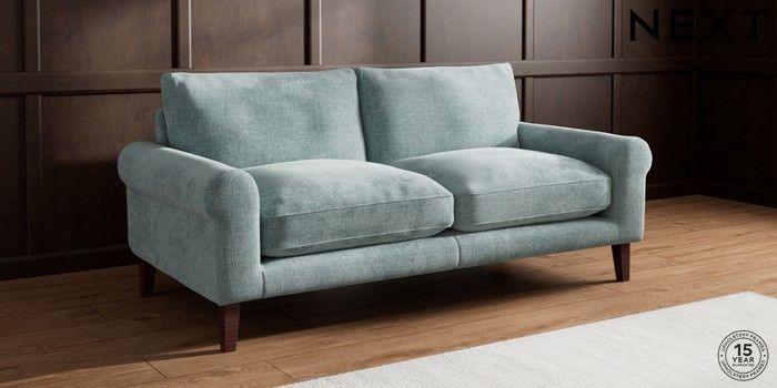 7.0.3 Buy Palermo Relaxed Sit 3 Seater Sofa Chunky Chenille Light Teal Green Tapered - Dark Brown from the Next UK online shop Click here to use our accessible website