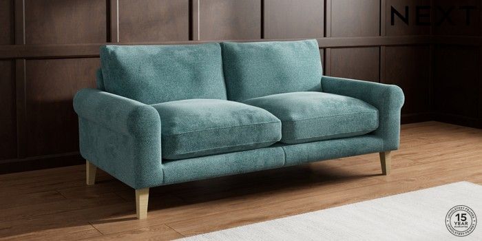7.0.3 Buy Palermo Relaxed Sit 3 Seater Sofa Chunky Chenille Mid Teal Green Tapered - Light from the Next UK online shop Click here to use our accessible website