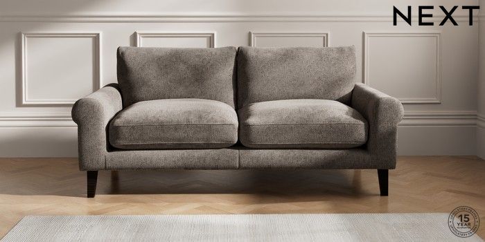 6.12.1 Buy Palermo Relaxed Sit 3 Seater Sofa Chunky Chenille Mink Brown Tapered - Dark from the Next UK online shop Click here to use our accessible website