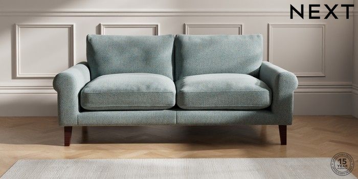 6.12.1 Buy Palermo Relaxed Sit 3 Seater Sofa Chunky Marl Mid Blue Tapered - Dark Brown from the Next UK online shop Click here to use our accessible website