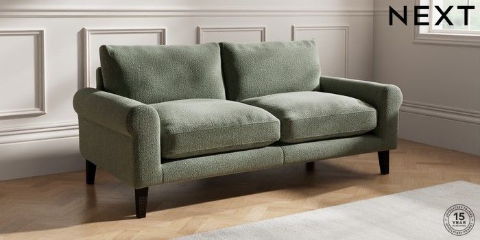 7.0.3 Buy Palermo Relaxed Sit 3 Seater Sofa Chunky Texture Mid Forest Green Tapered - Dark from the Next UK online shop Click here to use our accessible website