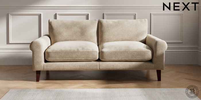 6.12.1 Buy Palermo Relaxed Sit 3 Seater Sofa Chunky Weave Cream Tapered - Dark Brown from the Next UK online shop Click here to use our accessible website