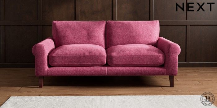 6.12.1 Buy Palermo Relaxed Sit 3 Seater Sofa Cotswold Chenille Dark Raspberry Pink Tapered - Dark Brown from the Next UK online shop Click here to use our accessible website