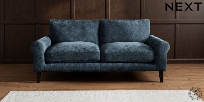 6.12.1 Buy Palermo Relaxed Sit 3 Seater Sofa Distressed Velour Midnight Blue Tapered - Dark from the Next UK online shop Click here to use our accessible website