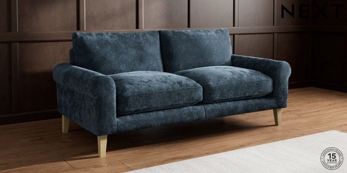 7.0.3 Buy Palermo Relaxed Sit 3 Seater Sofa Distressed Velour Midnight Blue Tapered - Light from the Next UK online shop Click here to use our accessible website