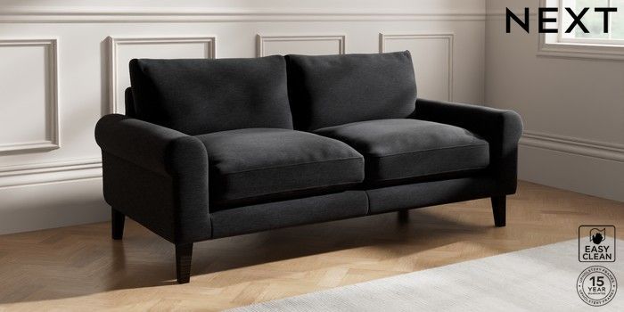 7.0.3 Buy Palermo Relaxed Sit 3 Seater Sofa Fine Chenille Easy Clean Black Tapered - Dark from the Next UK online shop Click here to use our accessible website
