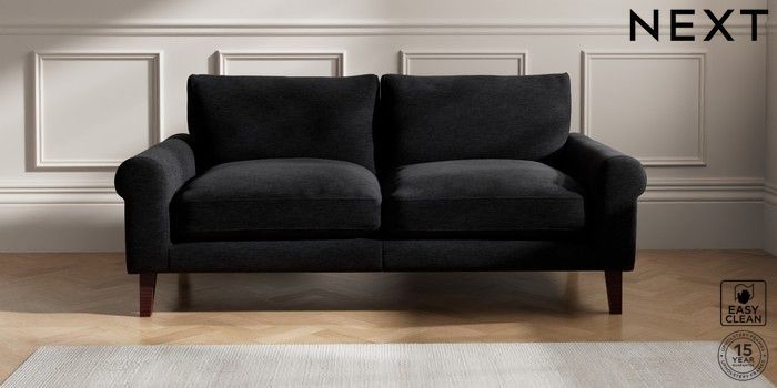 6.12.1 Buy Palermo Relaxed Sit 3 Seater Sofa Fine Chenille Easy Clean Black Tapered - Dark Brown from the Next UK online shop Click here to use our accessible website