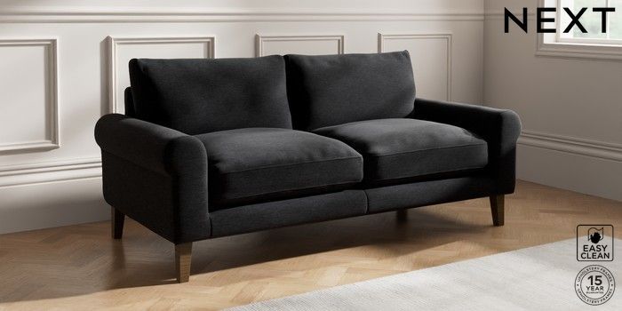 7.0.3 Buy Palermo Relaxed Sit 3 Seater Sofa Fine Chenille Easy Clean Black Tapered - Mid from the Next UK online shop Click here to use our accessible website