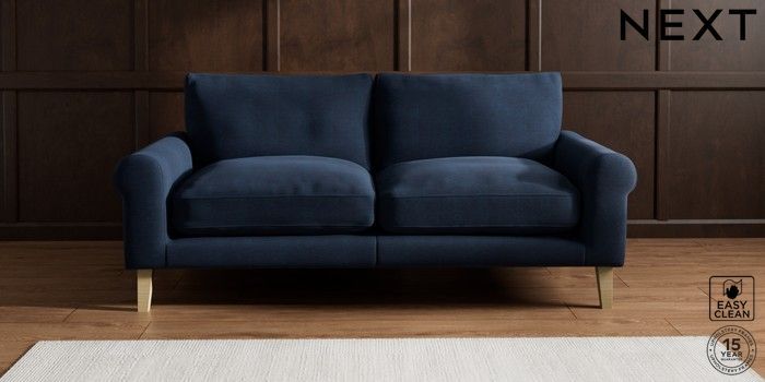 6.12.1 Buy Palermo Relaxed Sit 3 Seater Sofa Fine Chenille Easy Clean Dark Navy Blue Tapered - Light from the Next UK online shop Click here to use our accessible website