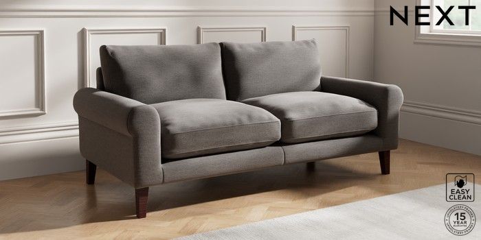 7.0.3 Buy Palermo Relaxed Sit 3 Seater Sofa Fine Chenille Easy Clean Dark Smoke Grey Tapered - Dark Brown from the Next UK online shop Click here to use our accessible website