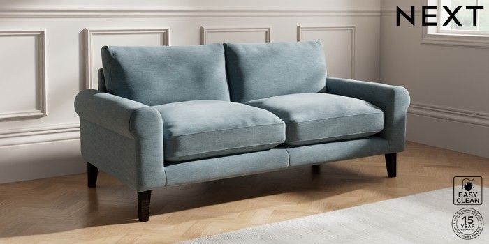 7.0.3 Buy Palermo Relaxed Sit 3 Seater Sofa Fine Chenille Easy Clean Mid Blue Tapered - Dark from the Next UK online shop Click here to use our accessible website