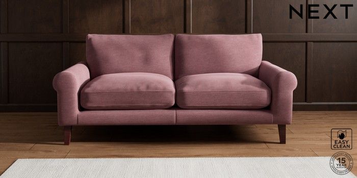 6.12.1 Buy Palermo Relaxed Sit 3 Seater Sofa Fine Chenille Easy Clean Mid Mulberry Purple Tapered - Dark Brown from the Next UK online shop Click here to use our accessible website