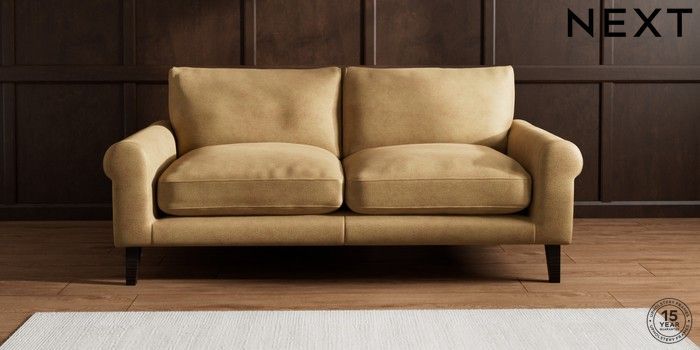 6.12.1 Buy Palermo Relaxed Sit 3 Seater Sofa Luxe Chenille Honey Yellow Tapered - Dark from the Next UK online shop Click here to use our accessible website