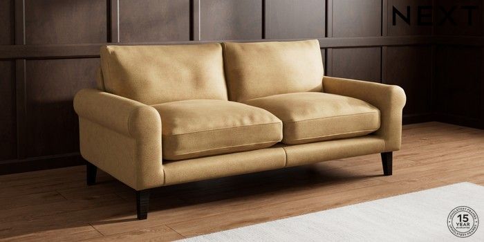 7.0.3 Buy Palermo Relaxed Sit 3 Seater Sofa Luxe Chenille Honey Yellow Tapered - Dark from the Next UK online shop Click here to use our accessible website