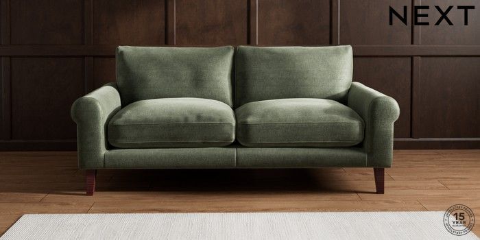 6.12.1 Buy Palermo Relaxed Sit 3 Seater Sofa Luxe Chenille Mid Green Tapered - Dark Brown from the Next UK online shop Click here to use our accessible website