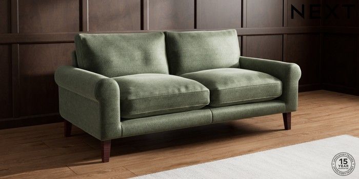 7.0.3 Buy Palermo Relaxed Sit 3 Seater Sofa Luxe Chenille Mid Green Tapered - Dark Brown from the Next UK online shop Click here to use our accessible website