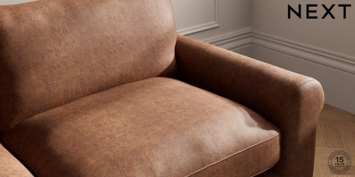 7.0.3 Buy Palermo Relaxed Sit 3 Seater Sofa Monza Faux Leather Easy Clean Chestnut Brown Tapered - Dark Brown from the Next UK online shop Click here to use our accessible website