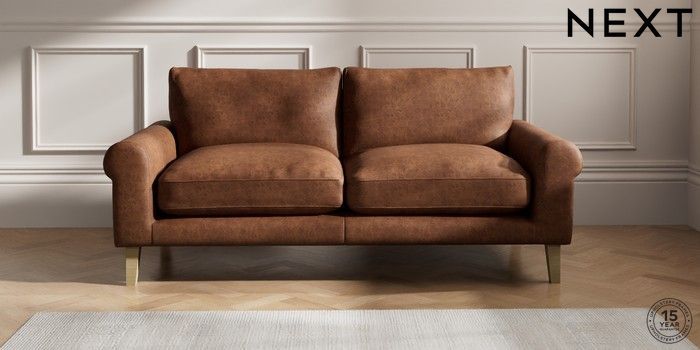 6.12.1 Buy Palermo Relaxed Sit 3 Seater Sofa Monza Faux Leather Easy Clean Chestnut Brown Tapered - Light from the Next UK online shop Click here to use our accessible website
