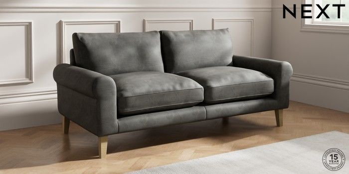 7.0.3 Buy Palermo Relaxed Sit 3 Seater Sofa Monza Faux Leather Easy Clean Dark Grey Tapered - Light from the Next UK online shop Click here to use our accessible website