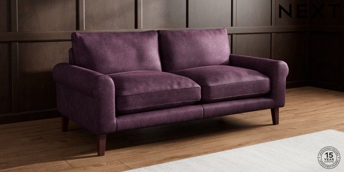 7.0.3 Buy Palermo Relaxed Sit 3 Seater Sofa Plush Chenille Dark Plum Purple Tapered - Dark Brown from the Next UK online shop Click here to use our accessible website