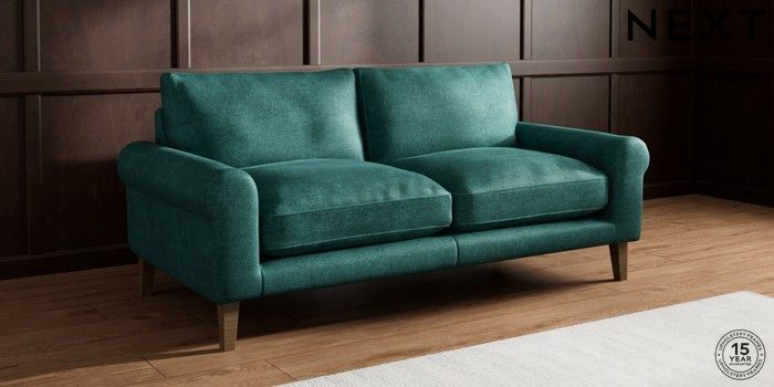 7.0.3 Buy Palermo Relaxed Sit 3 Seater Sofa Plush Chenille Dark Teal Green Tapered - Mid from the Next UK online shop Click here to use our accessible website