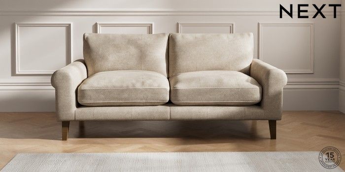 6.12.1 Buy Palermo Relaxed Sit 3 Seater Sofa Plush Chenille Light Natural Tapered - Mid from the Next UK online shop Click here to use our accessible website