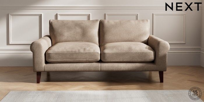 6.12.1 Buy Palermo Relaxed Sit 3 Seater Sofa Plush Chenille Mid Natural Tapered - Dark Brown from the Next UK online shop Click here to use our accessible website